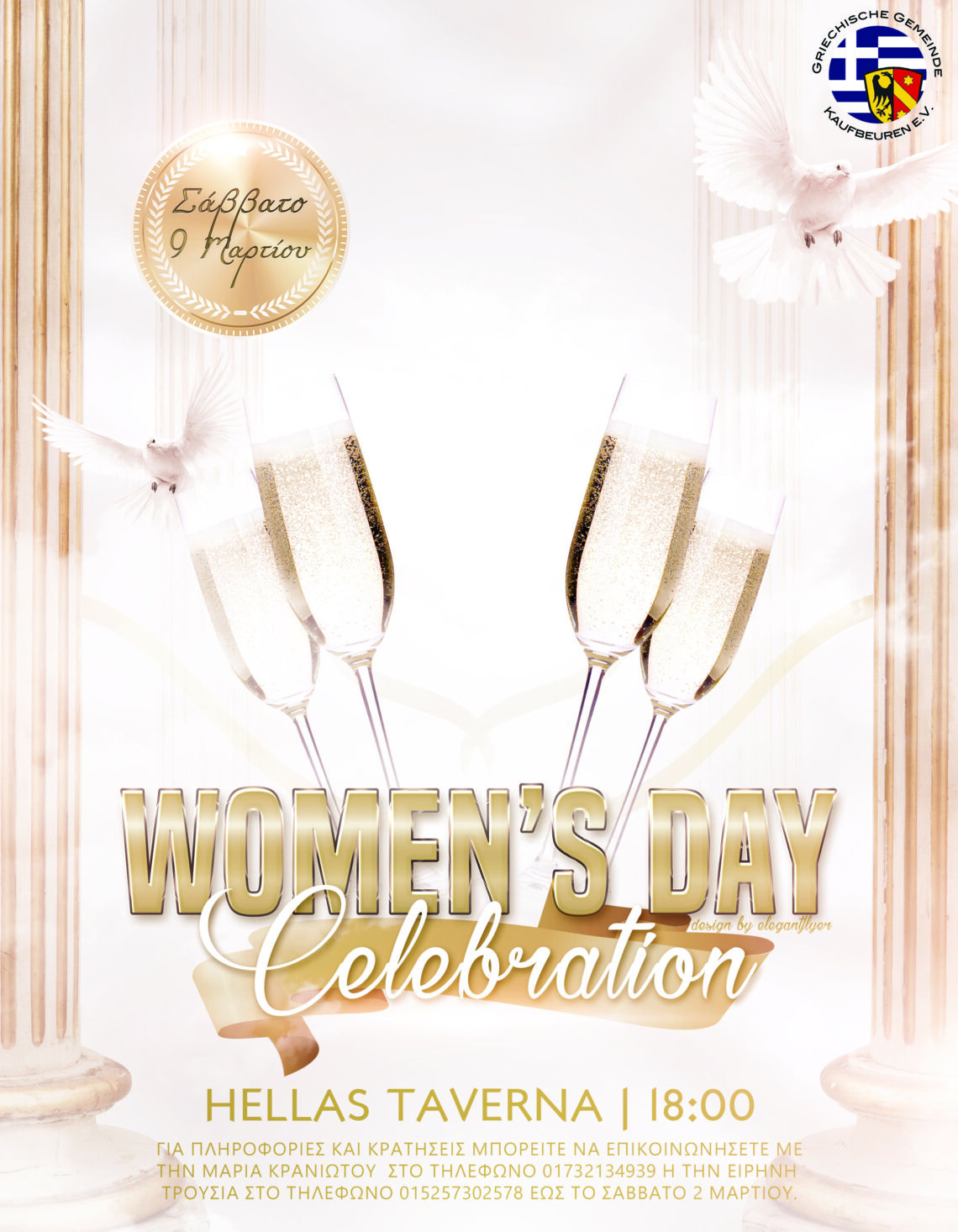 Η ημερομηνία είναι Σάββατο 9 Μαρτίου και ο χώρος του δείπνου είναι το εστιατόριο “Hellas Taverna” στο Kaufbeuren. Παρακαλούμε επιβεβαίωσε την παρουσία σου μέχρι το Σάββατο 2 Μαρτίου με τηνΜαρία Κρανιώτου στο τηλέφωνο 01732134939