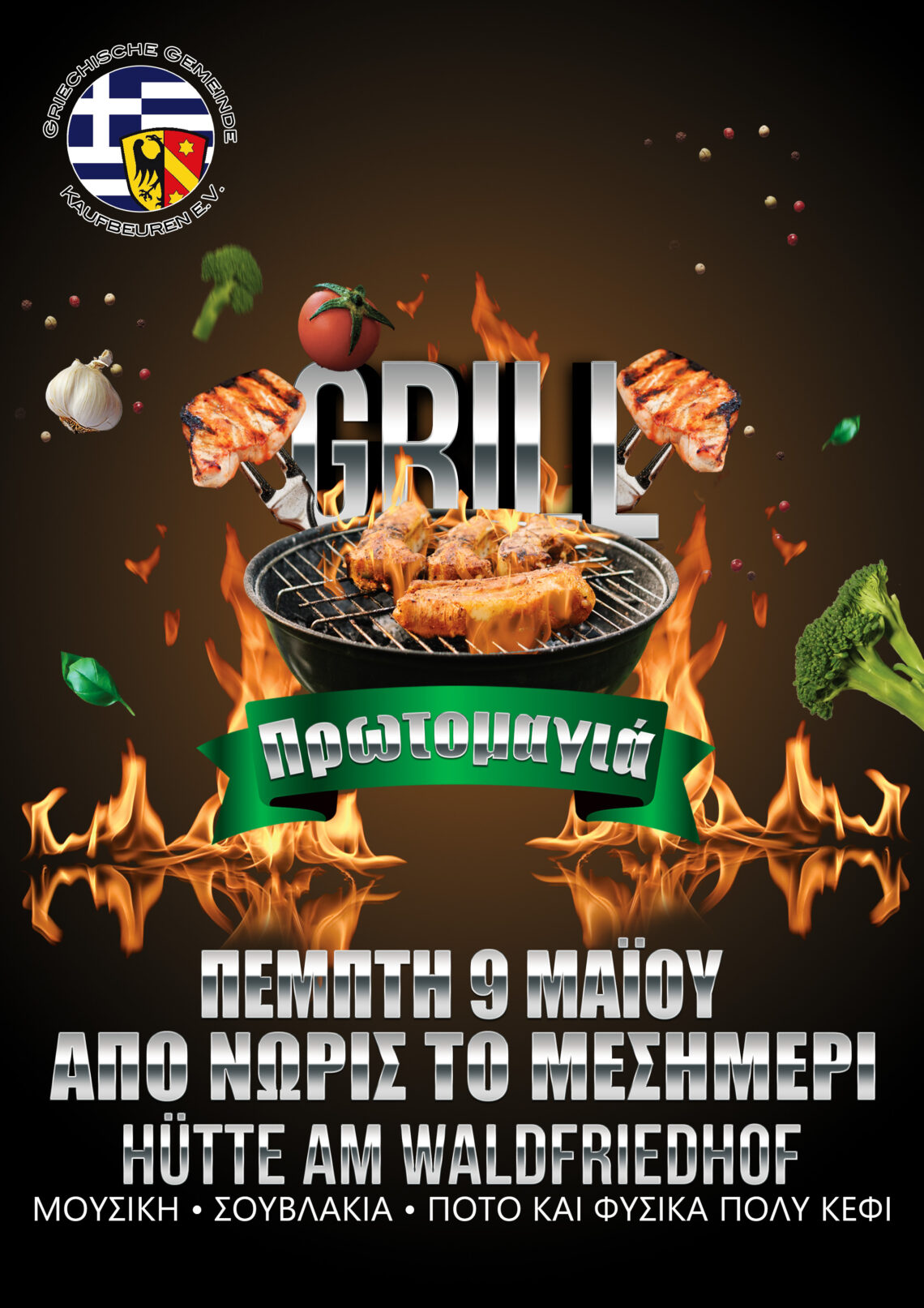 Σας προσκαλούμε στην γιορτή grill που διοργανώνουμε για την εργατική πρωτομαγιά! Η γιορτή θα πραγματοποιηθεί την Πέμπτη, 9 Μαΐου, στον όμορφο χώρο της Hütte am Waldfriedhof.