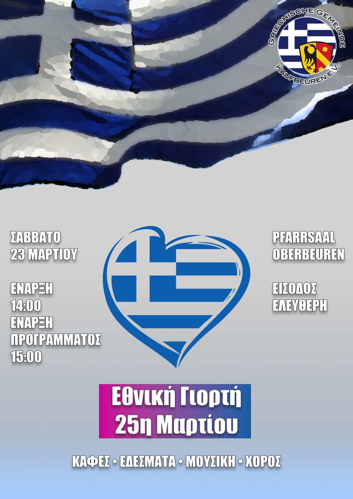 Η εκδήλωση θα πραγματοποιηθεί στο Pfarrsaal, Hauptstraße 4 Oberbeuren