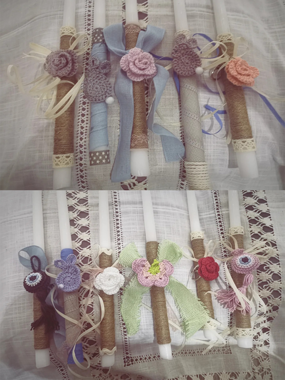 Ευχαριστούμε πάρα πολύ την Σοφία Παναγιωτούδη για τα πανέμορφα χειροποίητα πλεκτά μπρελόκ που στολίζουν τις λαμπάδες.
