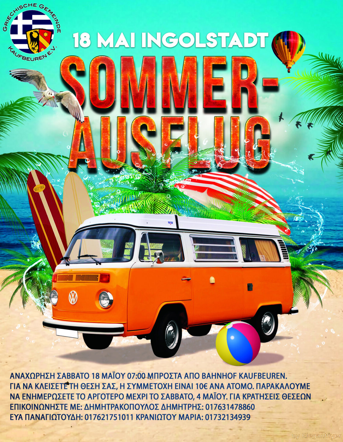 Για να κλείσετε τη θέση σας για αυτήν τη μοναδική εμπειρία, η συμμετοχή είναι μόνο 10€ ανά άτομο. Παρακαλούμε να ενημερώσετε το αργότερο μέχρι το Σάββατο, 4 Μαΐου, επικοινωνώντας μαζί μας στους ακόλουθους αριθμούς τηλεφώνου: